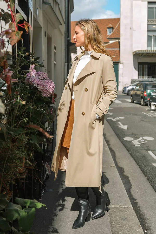 A timeless layer in soft beige, the Elise Trench Coat features clean lapels, a double-breasted front, and a sleek longline fit. Lightweight and polished, it pairs effortlessly with both casual and refined looks for everyday sophistication.