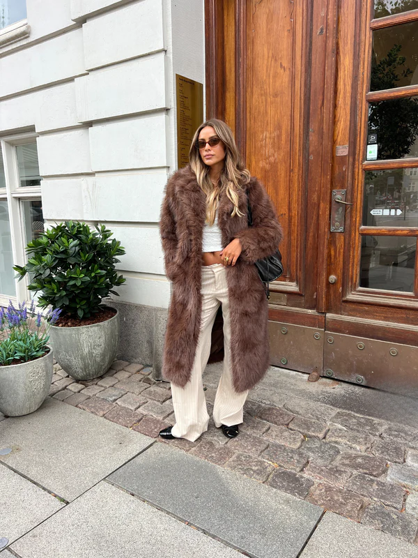 The Freya Long Coat blends cozy texture with timeless elegance. With its rich brown hue and full-length silhouette, it’s designed for both warmth and statement layering.